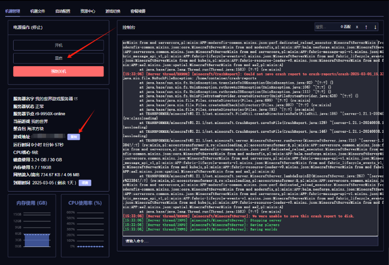 1. 创建完机器后进入资源中心 这里用海洋方块为例,选择 1.3.3 版本点击一键安装 2. 回到机器管理界面,重启机器 3. 进入 PCL,下载对应版本的整合包 4. 回到面板,进入文件管理页面,找到 server.properties进行编辑,找到 online-mode, 将 ture 改成 false 5. 回到机器管理界面,重启机器并复制游戏地址 6. 打开 PCL 下载好的海洋方块。进入游戏并输入游戏地址,就可以进入游戏了 注:如果有想玩的整合包但资源中心没有,可以联系技术客服帮您解决