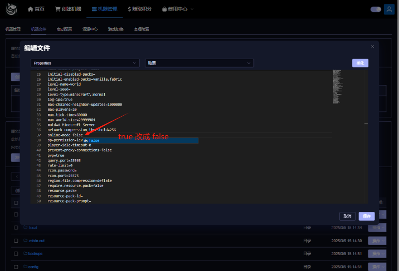 1. 创建完机器后进入资源中心 这里用海洋方块为例,选择 1.3.3 版本点击一键安装 2. 回到机器管理界面,重启机器 3. 进入 PCL,下载对应版本的整合包 4. 回到面板,进入文件管理页面,找到 server.properties进行编辑,找到 online-mode, 将 ture 改成 false 5. 回到机器管理界面,重启机器并复制游戏地址 6. 打开 PCL 下载好的海洋方块。进入游戏并输入游戏地址,就可以进入游戏了 注:如果有想玩的整合包但资源中心没有,可以联系技术客服帮您解决